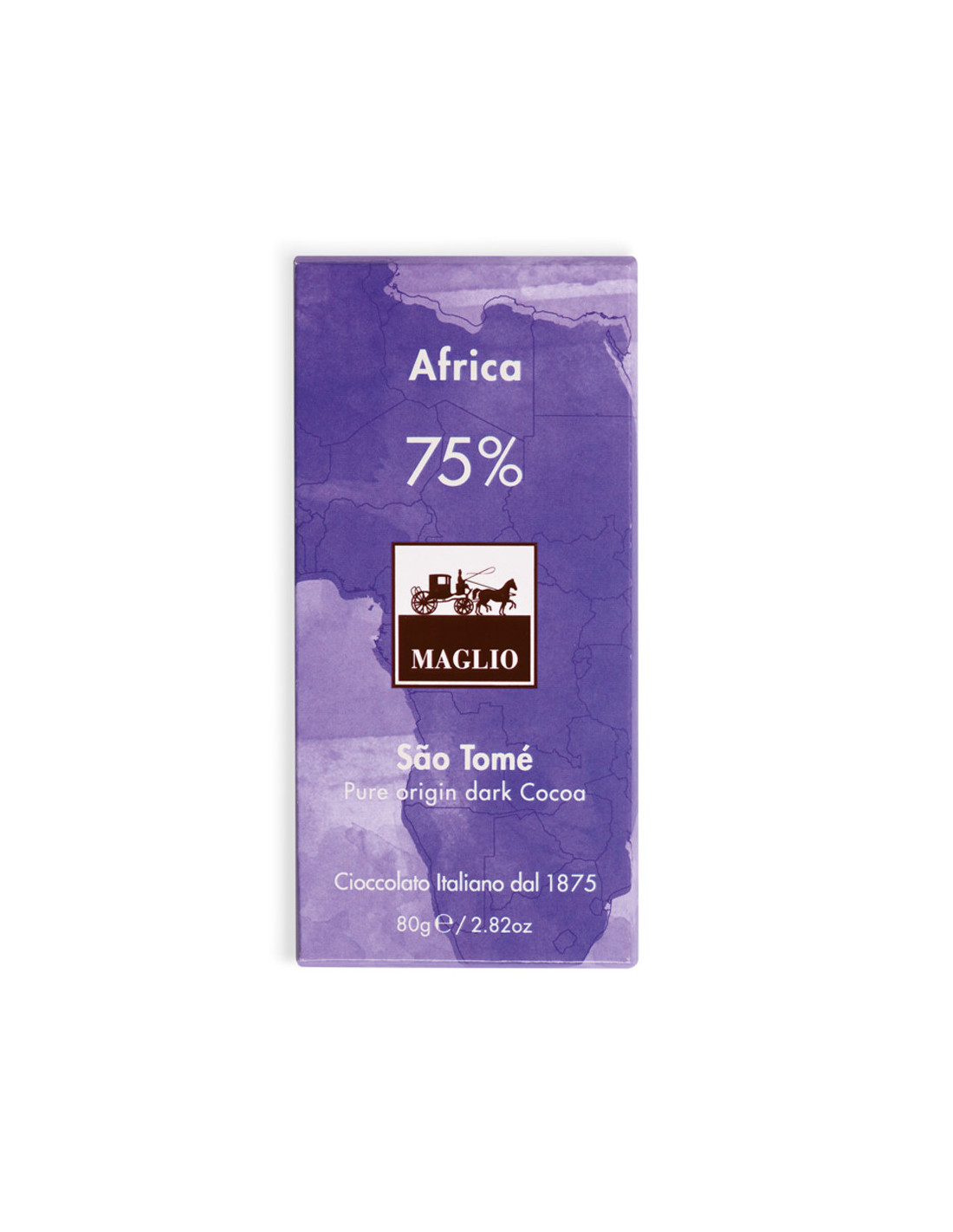 Africa is a single-origin Cacao from São Tomé, a land characterized mainly by dry heat and little rainfall. For this reason, its Cacao is very bitter and particularly strong. Referred to generically as Forastero, very weather resistant and also very productive, its “mazorca” has a very rounded shape and orange, green, yellow colors. Cacao is of the “morada” species, so it is very dark, deep purple almost black, naturally hybridized and from the dominant gene.